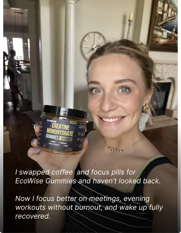 “ I used to slow down in the afternoon, dragging through client calls and emails. Since I started taking EcoWise HCl Creatine Gummies each morning, my energy stays consistent all day — no more crashes or overdosing on caffeine. I feel sharper in strategy meetings and still have the stamina to hit my evening Pilates class without feeling wiped out. ”